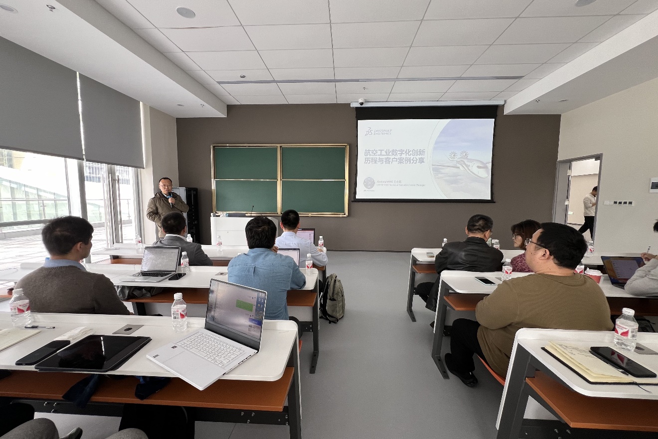 讲座环节,王小龙经理为师生作了题为《航空工业数字化创新发展历程与客户案例分享》的报告。王小龙经理系统介绍了达索系统的发展历程、民航飞机数字化设计与虚拟适航技术,并通过实际案例向大家分享了空客、商飞等大型航空公司在数字化设计方面的成功实践。分享结束后,在场师生就软件的新版本特点、人工智能的结合应用进行了深入交流。