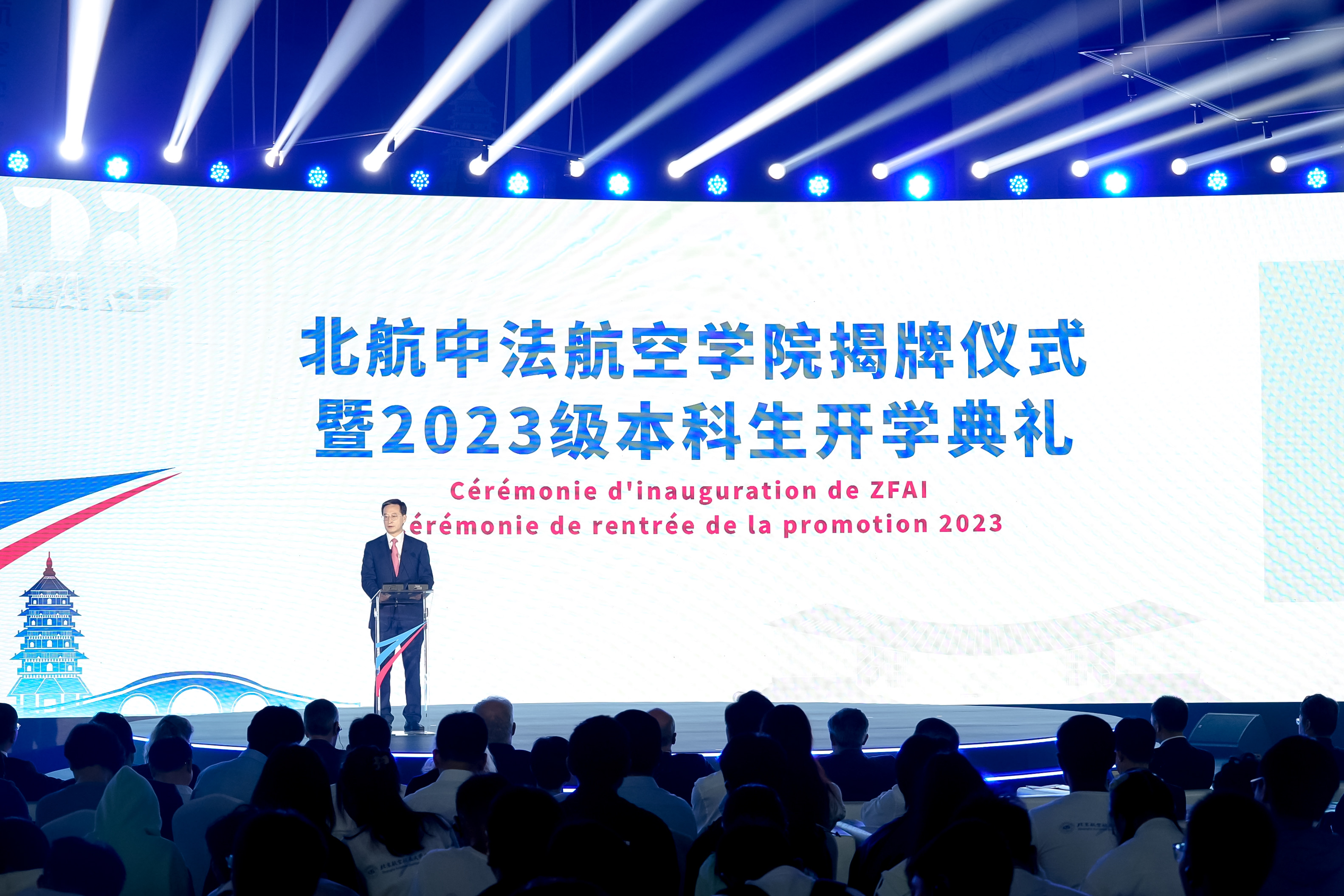 2023年9月15日,北航中法航空学院揭牌仪式暨2023级本科生开学典礼在北航杭州国际校园隆重举行,这标志着北航在建设高水平中外合作办学征途上又迈出了重要一步。